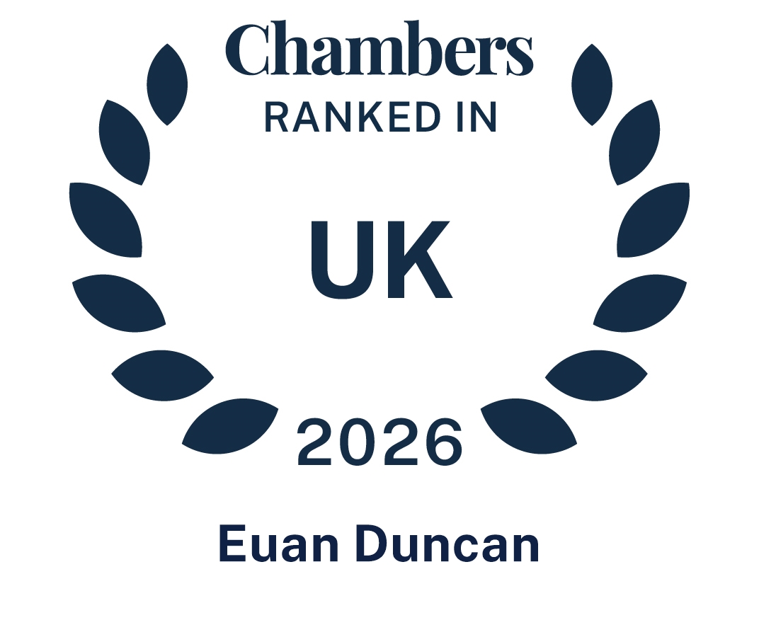 Euan is ranked for Intellectual Property in the 2025 edition of Chambers UK Guide to the Legal Profession. He is also listed in the WTR (World Trademark Review) 1000 and is described by clients as "fantastic for licensing, contracts and pre-litigation negotiation" and "an extremely safe pair of hands".